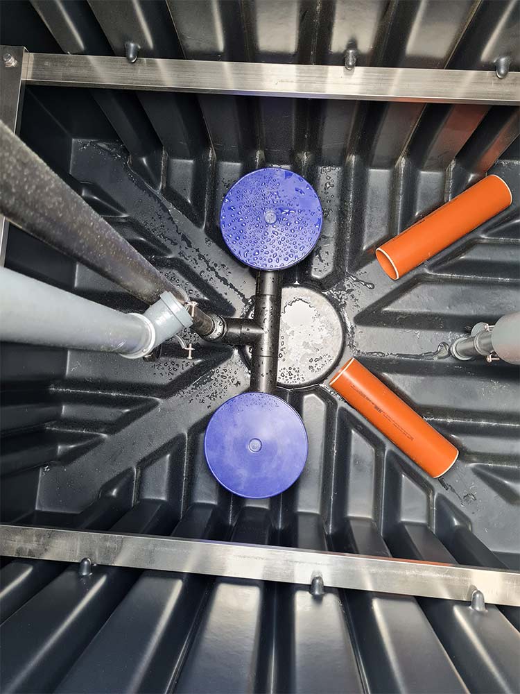 Поставлена система ClearFox® QuickOne+ є багатокамерною системою, що складається з буферної та очисної камер. Резервуари виготовлені з пластика методом ротаційного формування, що робить їх ідеальними для підземного монтажу.