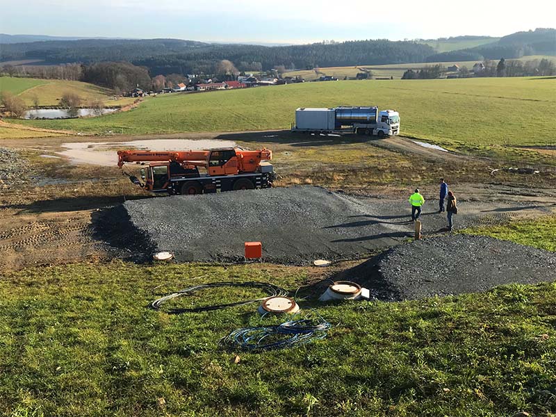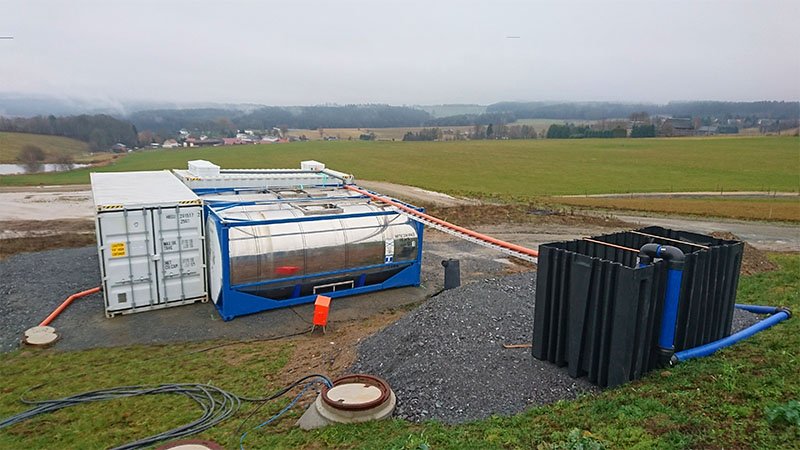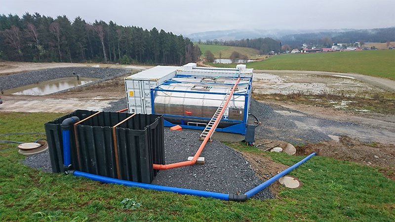 The customer opted for a quickly available leasing system, which the ClearFox® team installed within a very short time. This consisted of four container modules, which included screening, a buffer, a fixed bed biological reactor and a secondary clarifier as a lamella clarifier. The screening first removes all coarse material such as straw and small stones from the wastewater. From there, it enters a mixing and equalisation tank consisting of two hydraulically connected tank containers. A pump feeds the system so that the wastewater for dairy wastewater treatment can flow freely through the biology and the secondary clarifier.